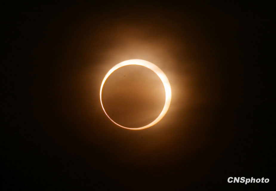 本世紀(jì)首場(chǎng),也是全球未來(lái)1000年內(nèi)環(huán)食持續(xù)時(shí)間最長(zhǎng)的日環(huán)食1月15日劃過天際。日環(huán)食帶從印度洋經(jīng)過緬甸進(jìn)入中國(guó)國(guó),由云南經(jīng)四川省的部分地區(qū),再穿過重慶市、湖北省西北部,直至華北地區(qū)。圖片來(lái)源:中國(guó)新聞網(wǎng)
