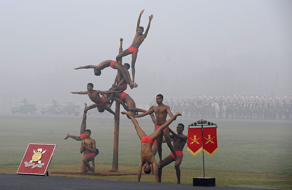 1月15日,在印度首都新德里舉行的建軍節(jié)閱兵式上,印度士兵接受檢閱。圖片來源:中國新聞網