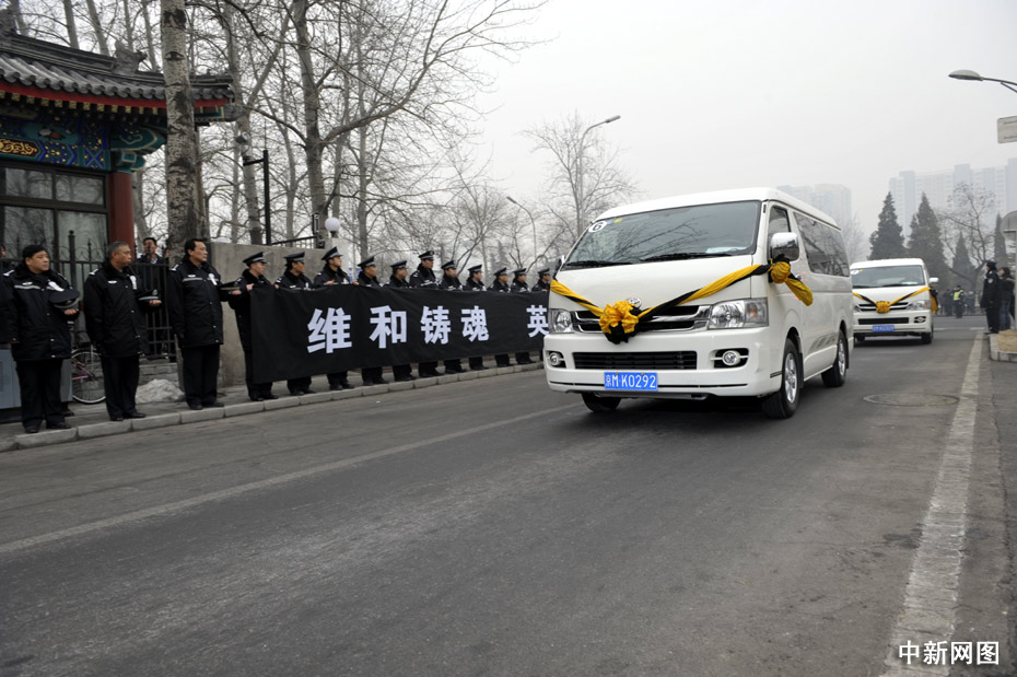1月19日,北京民眾自發(fā)守候在通往北京八寶山殯儀館的路口迎接英烈的靈柩。當(dāng)日,八位海地地震遇難中國維和警察的靈柩搭乘專機(jī)將抵達(dá)北京。中新網(wǎng)記者 金碩 攝