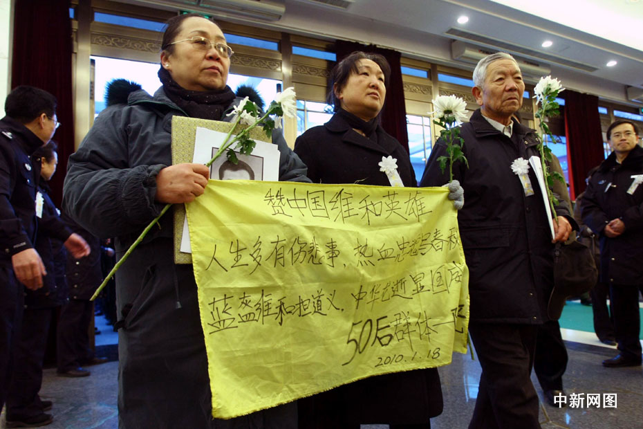 海地地震遇難中國維和警察遺體告別儀式1月20日上午9時在北京八寶山殯儀館大禮堂舉行。圖片來源:中國新聞網