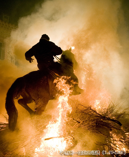 1月16日,西班牙一小村莊舉行一年一度的圣安東尼贖罪節(jié),勇敢的騎士們騎上心愛的坐騎穿過熊熊燃燒的火堆。圖片來源:中國新聞網(wǎng)>>點擊觀看詳細(xì)內(nèi)容