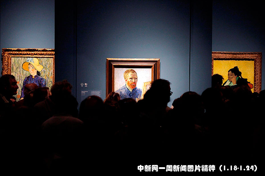 1月23日,倫敦梵高展《真實(shí)的梵高在英國倫敦皇家藝術(shù)學(xué)院舉行,各路媒體記者前來搶先一睹大師的作品。照片正中的這幅畫為梵高的自畫像。圖片來源:中國新聞網(wǎng)