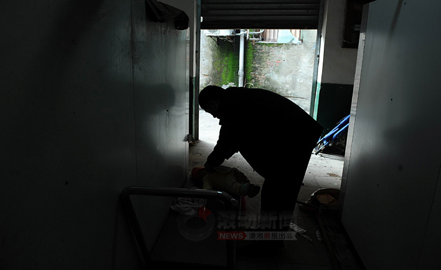 1月19日,省兒童醫(yī)院太平間,高雄飛給小振和穿上剛買的新衣服,送兒子最后一程。“兒子!爸爸給 你穿衣服來了,乖乖的啊!”高雄飛鼻子不停地抽搐,雙手卻輕輕地給 兒子穿上新買的黃色小衣裳。瀟湘晨報 記者 楊抒懷 攝