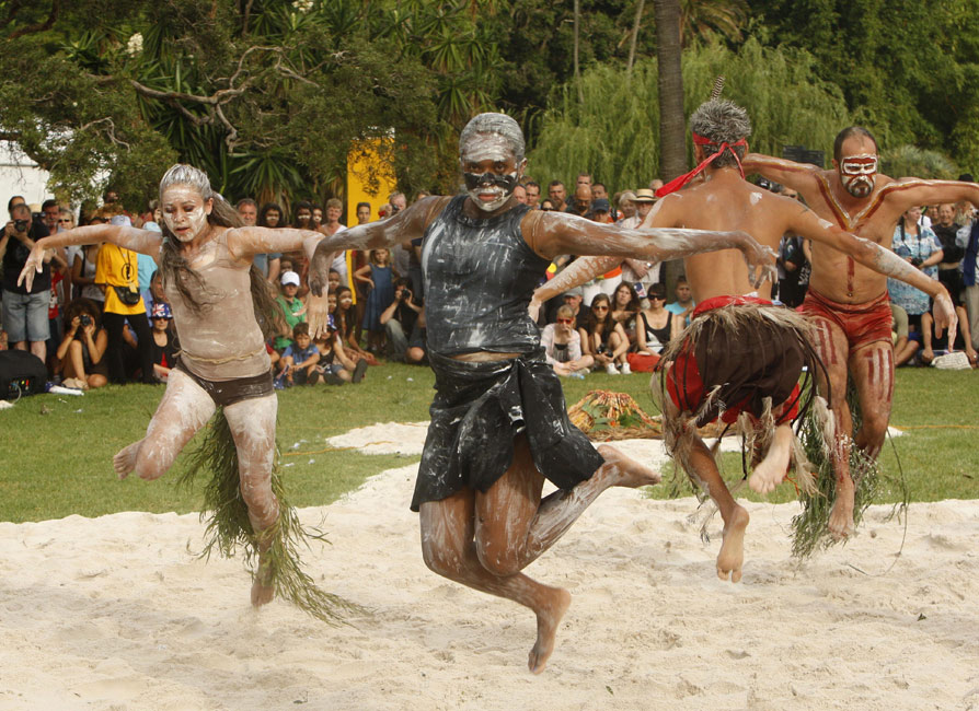 1月26日,澳大利亞土著居民在悉尼表演傳統(tǒng)舞蹈慶祝澳大利亞國(guó)慶日。