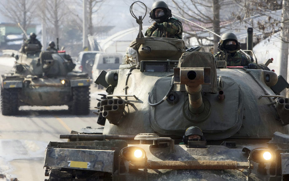 1月27日,韓國江原道,韓國陸軍部隊在嚴寒中進行戰(zhàn)術訓練。