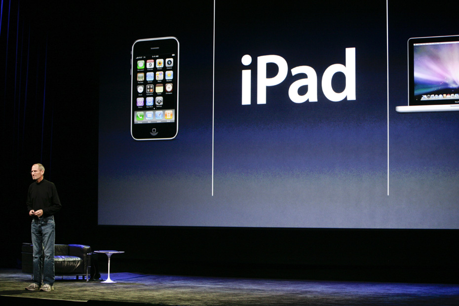 美東時間1月27日上午10點(北京時間1月28日凌晨2點),蘋果CEO喬布斯于在美國舊金山Yerba Buena藝術中心正式發(fā)布并展示了其首款平板電腦iPad。圖片來源:中國新聞網