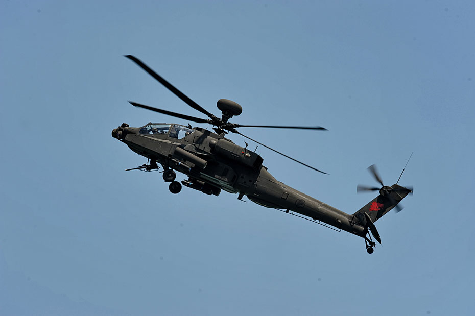 圖為AH-64阿帕奇武裝直升機在進行飛行表演。