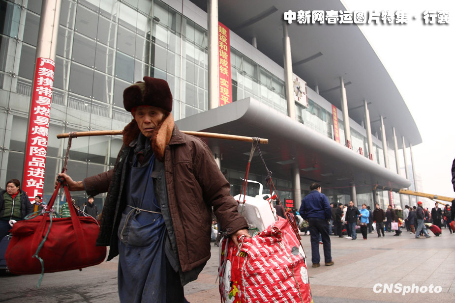 春節(jié)臨近,出門在外的人拎著大包小包地回家過年。這行囊或重或輕,可能是帶給父母的孝敬,也可能是帶給愛人的心動,但每個行囊中一定都會裝著人們一年來收獲的喜悅之情。中新社發(fā) 張浪 攝 攝