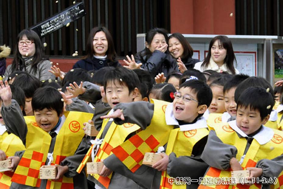 2月3日,日本首都東京,幼兒園小朋友們在“節(jié)分”的撒豆驅(qū)邪儀式上投擲大豆。圖片來源:中國新聞網(wǎng)>>點擊觀看詳細(xì)內(nèi)容