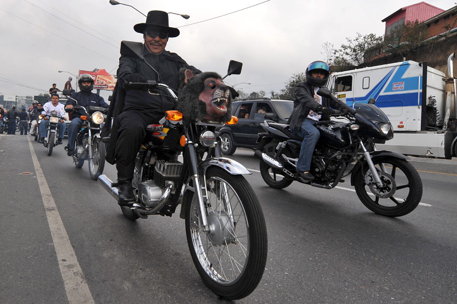 當(dāng)?shù)貢r間2月6日,在危地馬拉首都危地馬拉城,大約30000名摩托車手駕駛著機(jī)車在街頭游行。