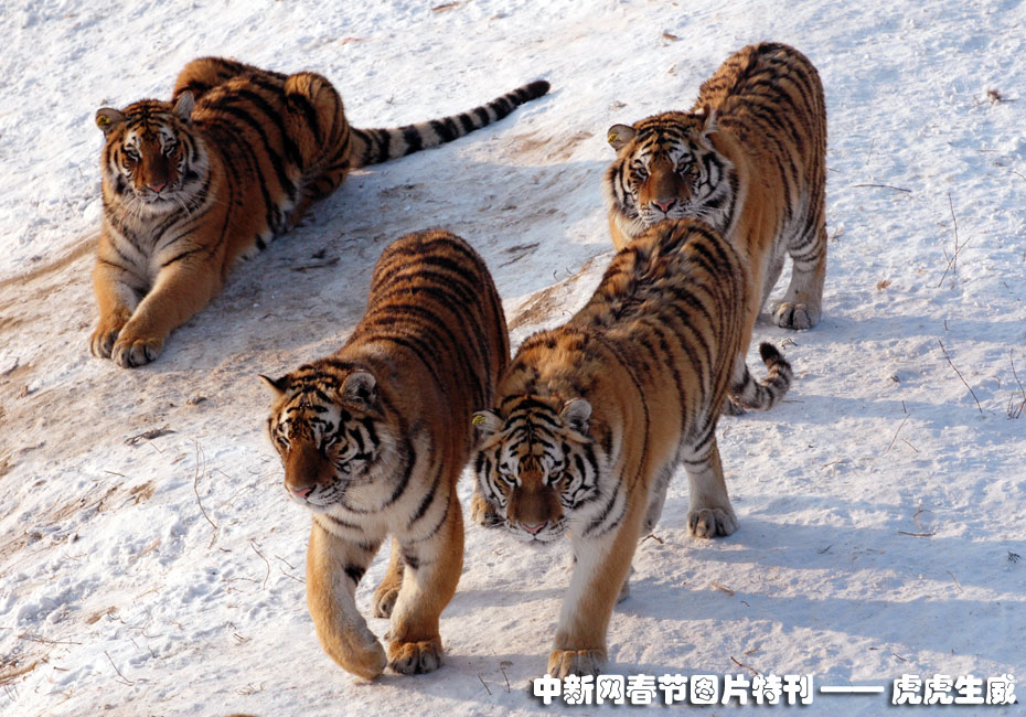 1月13日,黑龍江東北虎林園,老虎在雪地中嬉戲追逐。(王少華 張書儉 攝) 圖片來(lái)源:中國(guó)新聞網(wǎng)