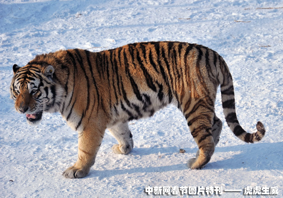 1月13日,黑龍江東北虎林園,老虎在雪地中嬉戲追逐。(王少華 張書儉 攝) 圖片來源:中國新聞網(wǎng)