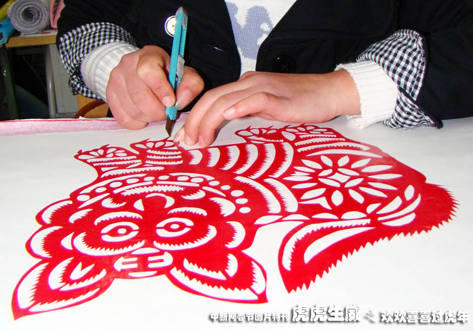 12月21日,重慶市云陽(yáng)教師進(jìn)修學(xué)院08級(jí)幼教班的學(xué)生在利用美術(shù)課“剪老虎”。中新社發(fā) 饒國(guó)君 攝