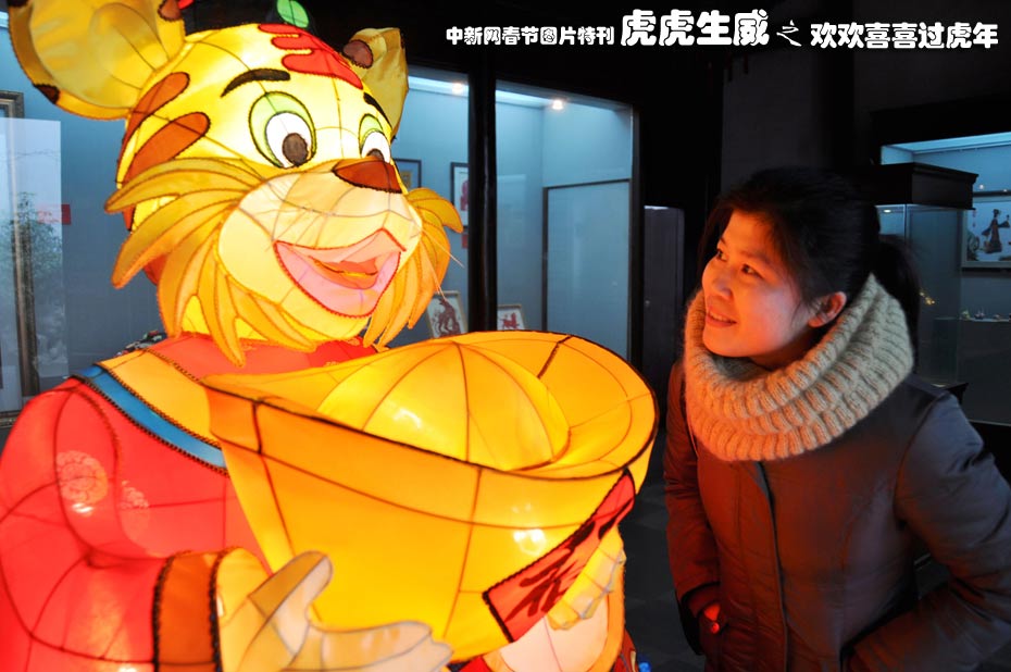2月3日,一名游客在南京民俗博物館舉辦的“虎年民間藝術大展”上觀賞“虎燈”。此次大展展示了云錦、剪紙、金箔、燈彩等20個門類50多名藝術家和傳承人的近百件民間虎文化作品。據了解,虎年民間藝術大展4月5日結束。 中新社發(fā) 谷昌旺 攝