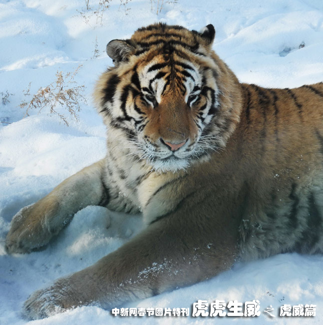 1月13日,黑龍江東北虎林園,老虎在雪地中嬉戲追逐。(王少華 張書儉 攝)