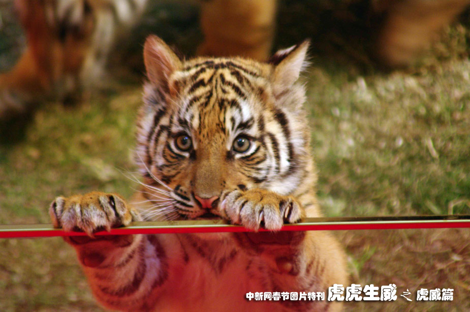 1月30日,虎年將至,重慶某商廈開展野生動物保護法宣傳,“請”來幾只活潑可愛的小老虎與市民近距離接觸。中新社發(fā) 金城 攝