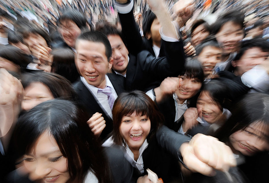 2月10日,日本東京職業(yè)學(xué)校的學(xué)生在求職動(dòng)員會上伸出拳頭展現(xiàn)信心。日本的失業(yè)率達(dá)5%,2011屆畢業(yè)生將面臨嚴(yán)峻就業(yè)形式。圖片來源:中國新聞網(wǎng)