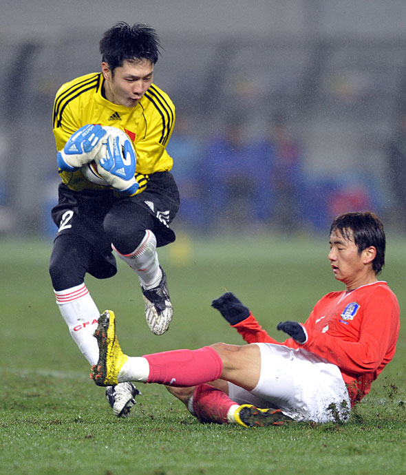 2月10日晚18:15,中國(guó)男足國(guó)家隊(duì)迎來(lái)了東亞四強(qiáng)賽第二場(chǎng)與韓國(guó)隊(duì)的比賽,憑借著于海、郜林和鄧卓翔的進(jìn)球,國(guó)足3:0完勝韓國(guó),讓“恐韓癥”成為歷史。圖片來(lái)源:中國(guó)新聞網(wǎng)