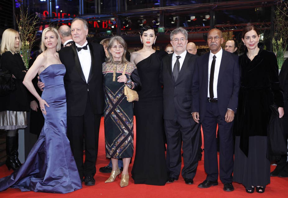當(dāng)?shù)貢r間2月11日晚,第60屆柏林電影節(jié)在風(fēng)雪交加的嚴(yán)寒中盛大揭幕。圖為本屆電影節(jié)評委陣容集體亮相。
