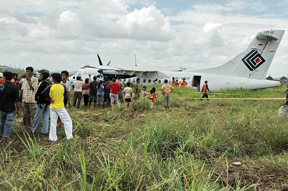 印尼當(dāng)?shù)貢r(shí)間2月11日,印尼一架客機(jī)成功迫降婆羅洲島的一片稻田,機(jī)上47名乘客和5名機(jī)組人員除兩人腿部骨折外,其他人均安然無恙。圖片來源:中國新聞網(wǎng)