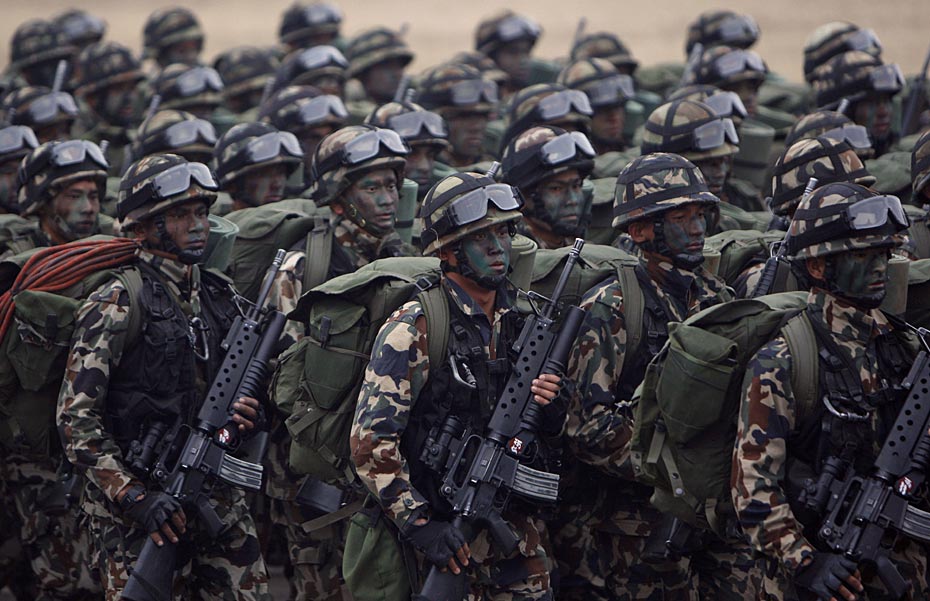 當(dāng)?shù)貢r(shí)間2月12日,尼泊爾士兵在首都加德滿都舉行了建軍節(jié)閱兵式。尼泊爾總統(tǒng)和總參謀長(zhǎng)檢閱了受閱部隊(duì)。圖片來(lái)源:中國(guó)新聞網(wǎng)