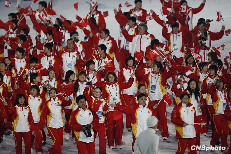 圖為中國冬奧代表團(tuán)運(yùn)動(dòng)員入場。