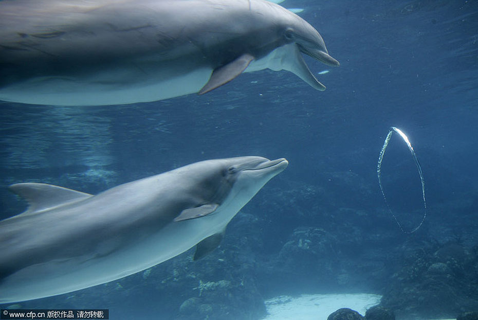 近日,美國(guó)奧蘭多海洋世界的一只寬吻海豚吹出“心形”氣泡,似乎要在情人節(jié)來(lái)臨前夕傳達(dá)濃濃愛(ài)意。圖片來(lái)源:CFP