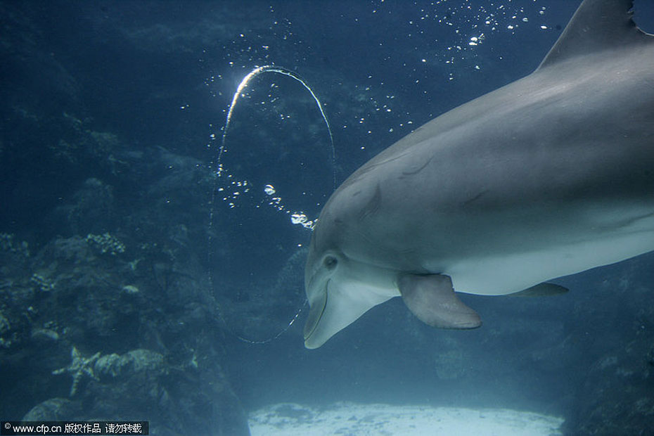 近日,美國奧蘭多海洋世界的一只寬吻海豚吹出“心形”氣泡,似乎要在情人節(jié)來臨前夕傳達濃濃愛意。圖片來源:CFP