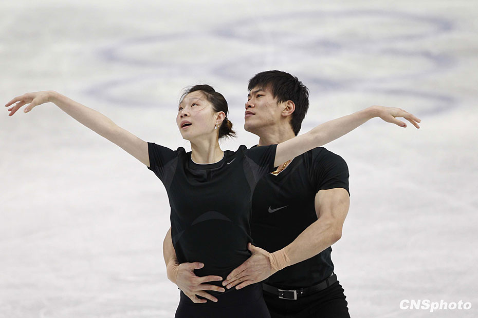 當?shù)貢r間2月13日,中國花樣滑冰隊龐清/佟健、張丹/張昊在溫哥華太平洋體育館,利用最后的休息時間重復練習積極備戰(zhàn)即將到來的比賽。中新社記者 盛佳鵬 攝