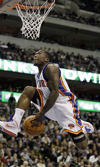 圖為紐約尼克斯隊(duì)的羅賓遜進(jìn)行扣籃表演。