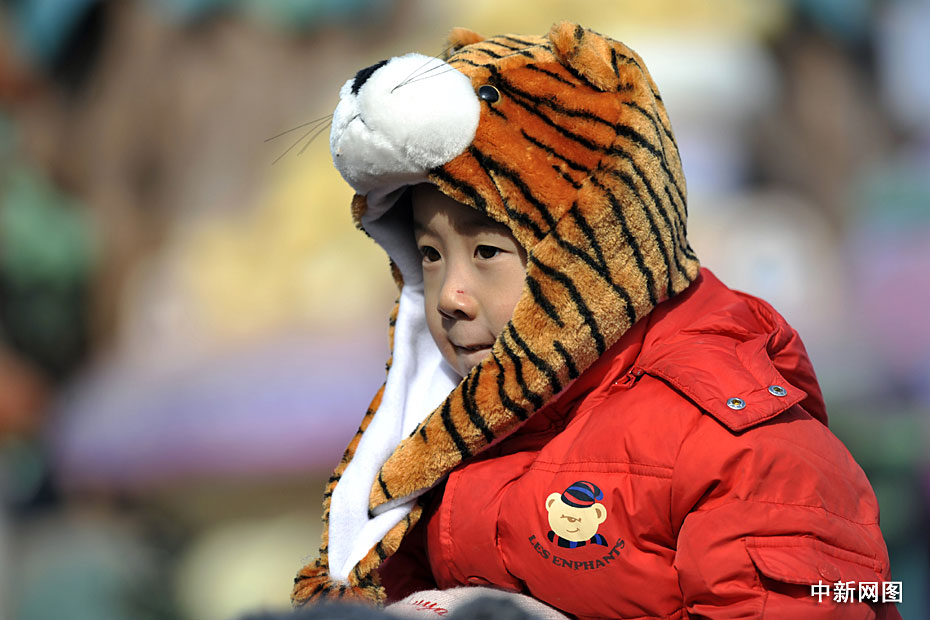 2月14日,農歷正月初一,北京各大傳統(tǒng)廟會、洋廟會爭相開幕,許多游客頭戴虎年飾品開心游廟會。中新網記者 金碩 攝