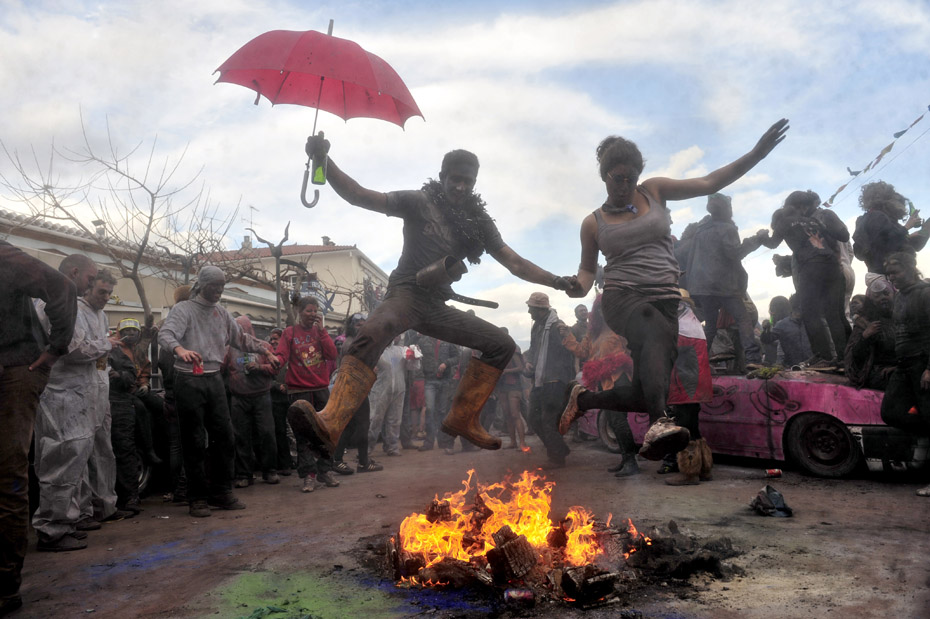 2月15日,希臘港口加拉西迪,狂歡者在街頭參加“面粉大戰(zhàn)”。“面粉大戰(zhàn)”是當(dāng)?shù)貞c祝狂歡季結(jié)束的一項(xiàng)傳統(tǒng)活動(dòng),隨后將是為期40天的齋戒月直至復(fù)活節(jié)。圖片來源:中國新聞網(wǎng)