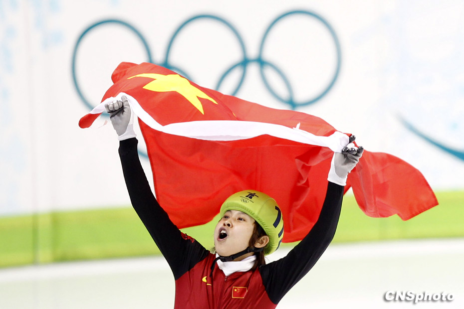 2010年溫哥華冬奧會短道速滑女子500米決賽北京時間2月18日上午11時許舉行,中國選手王濛獲得冠軍,為中國代表團(tuán)再添一枚金牌。圖片來源:中國新聞網(wǎng)