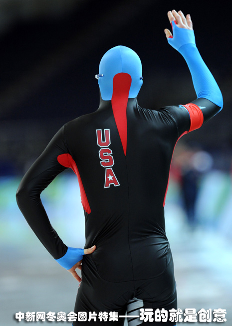 美國速滑運(yùn)動員的搞怪造型。圖片來源:中國新聞網(wǎng)