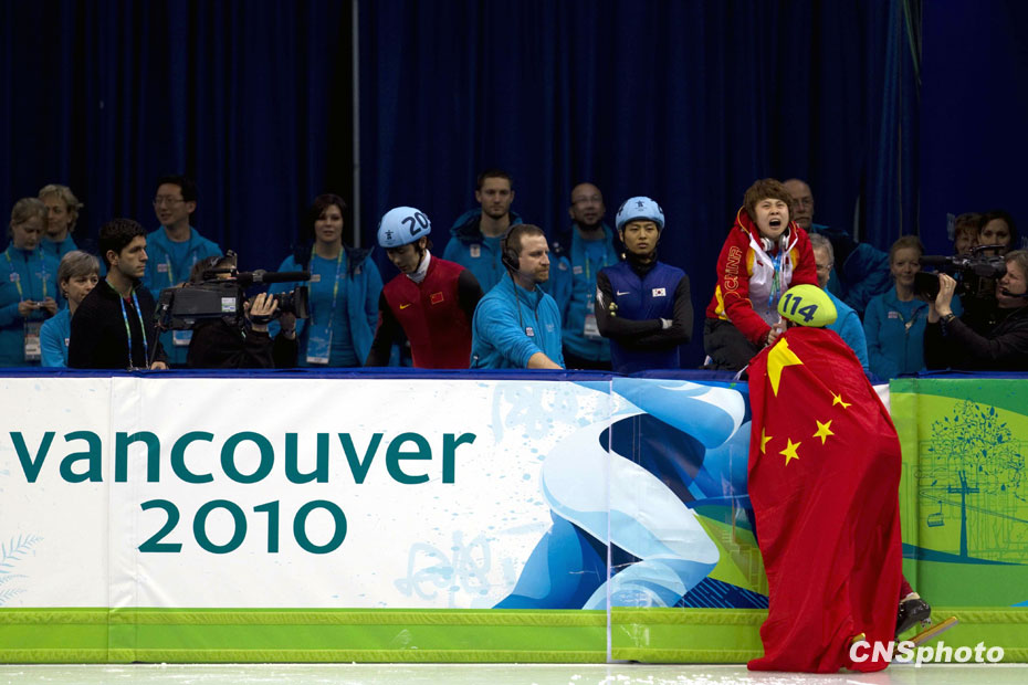 2月21日中午,剛剛結(jié)束的冬奧會短道速滑女子1500米決賽中,中國選手周洋力壓各路名將,以破奧運會紀錄的2分16秒993的成績奪冠,為中國代表團添得第三金。中新社發(fā) 盛佳鵬 攝