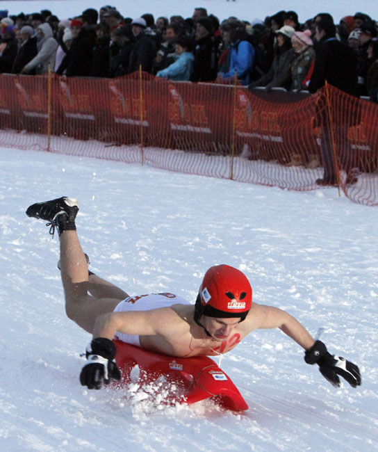 近日,在德國北部小鎮(zhèn)舉行了一場別開生面的滑雪大賽,參賽者在冰天雪地中赤裸著上身在滑雪板上滑行。超過一萬名觀眾觀看了比賽。