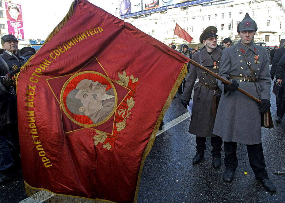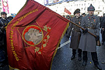 2月23日,俄羅斯莫斯科,示威者參加俄羅斯共產(chǎn)黨組織的集會,抗議軍隊改革。圖片來源:中國新聞網(wǎng)