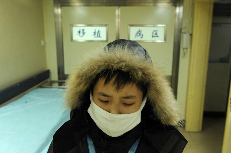 圖為準(zhǔn)備回家的邵帥經(jīng)過(guò)母親所在病房時(shí)顯得特別的疲憊。朱嘉磊/CFP