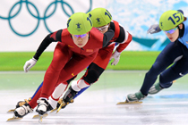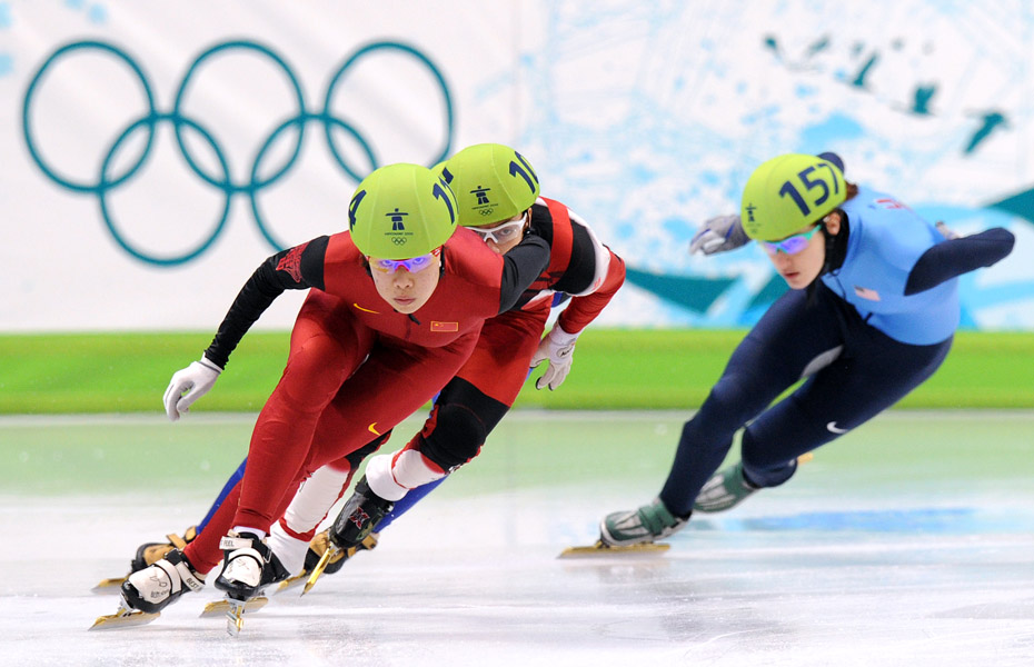 當(dāng)?shù)貢r(shí)間2月24日,溫哥華冬奧會(huì)女子短道速滑3000米接力A組決賽中,中國(guó)隊(duì)王濛、周洋、孫琳琳、張會(huì)四朵金花聯(lián)袂出擊,最終將金牌歸入中國(guó)隊(duì)囊中。圖片來(lái)源:中國(guó)新聞網(wǎng)