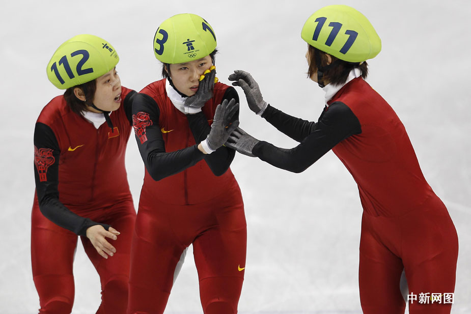 中國(guó)短道速滑隊(duì)25日在溫哥華冬奧會(huì)上奪得女子接力金牌,實(shí)現(xiàn)了歷史性突破。中新社記者盛佳鵬 攝