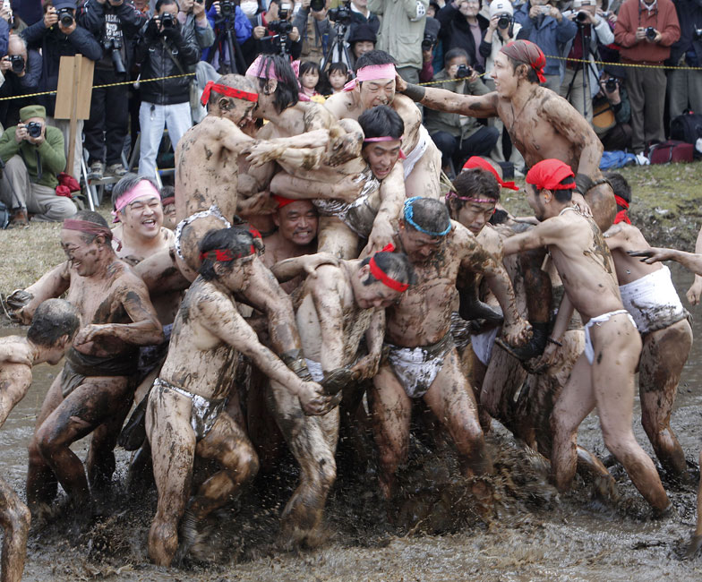 日本民眾泥漿中“打滾”祈求豐收