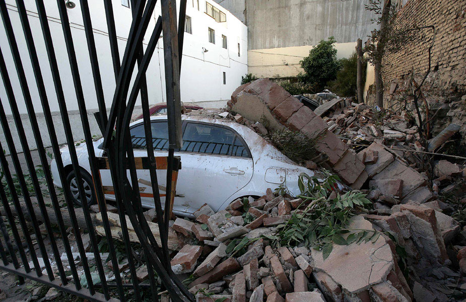 美國地震勘測局報告稱,智利康塞普西翁省附近當(dāng)?shù)貢r間27日凌晨發(fā)生里氏8.8級強烈地震,首都圣地亞哥有明顯震感。智利總統(tǒng)巴切萊特已宣布國家進(jìn)入“災(zāi)難狀態(tài)”。目前強烈地震造成的死亡人數(shù)已經(jīng)升至78人。圖為在智利瓦爾帕萊索,地震致使該地區(qū)多處房屋倒塌。