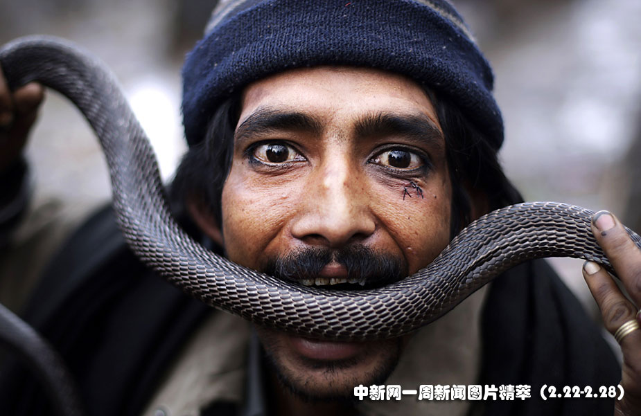 22日(周一),在巴基斯坦伊斯蘭堡附近一條街道上的耍蛇藝人。
