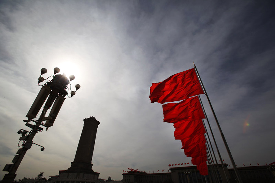 北京,兩會(huì)即將開幕,各項(xiàng)準(zhǔn)備工作就緒。天安門廣場紅旗招展。Feng Li 攝