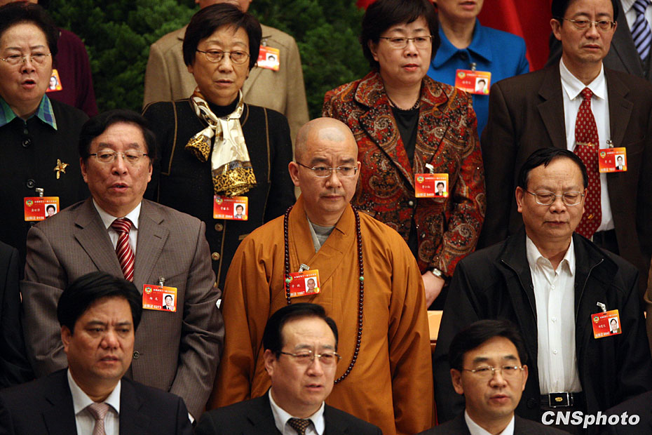 3月3日下午,全國政協(xié)十一屆三次會議在北京人民大會堂開幕,全體委員高唱國歌。中新社發(fā) 湯彥俊 攝