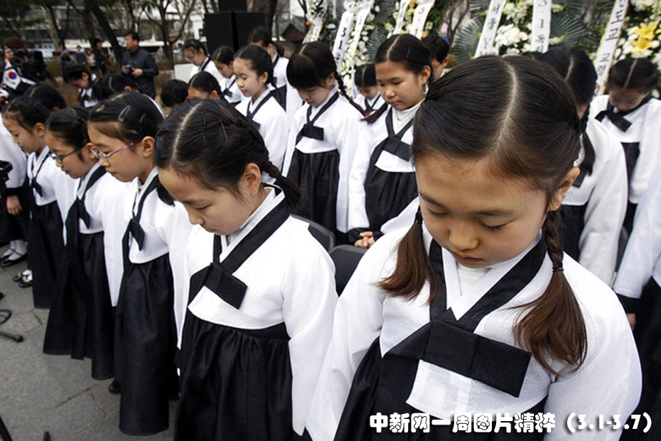 近日,韓國首爾的小學(xué)生身穿傳統(tǒng)服飾在三一運動紀(jì)念活動上默禱。三一運動紀(jì)念日是為了紀(jì)念1919年3月1日發(fā)生的反抗日本殖民統(tǒng)治的起義而設(shè)。圖片來源:中國新聞網(wǎng)