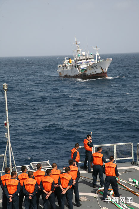 09年4月在西印度洋遭索馬里海盜挾持的臺灣遠(yuǎn)洋漁船“穩(wěn)發(fā)161號”,歷經(jīng)各方營救,終于在遭挾持10個多月后,包括船長顏勝男等共28人返回高雄港。圖片來源:中國新聞網(wǎng)