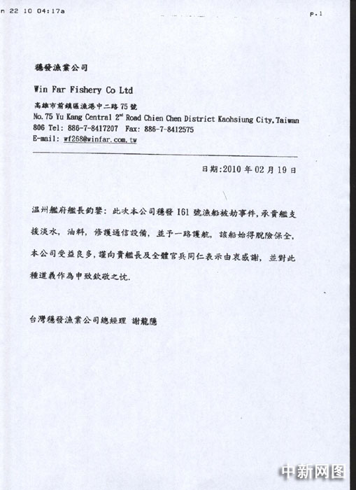 09年4月在西印度洋遭索馬里海盜挾持的臺灣遠洋漁船“穩(wěn)發(fā)161號”,歷經(jīng)各方營救,終于在遭挾持10個多月后,包括船長顏勝男等共28人返回高雄港。圖片來源:中國新聞網(wǎng)
