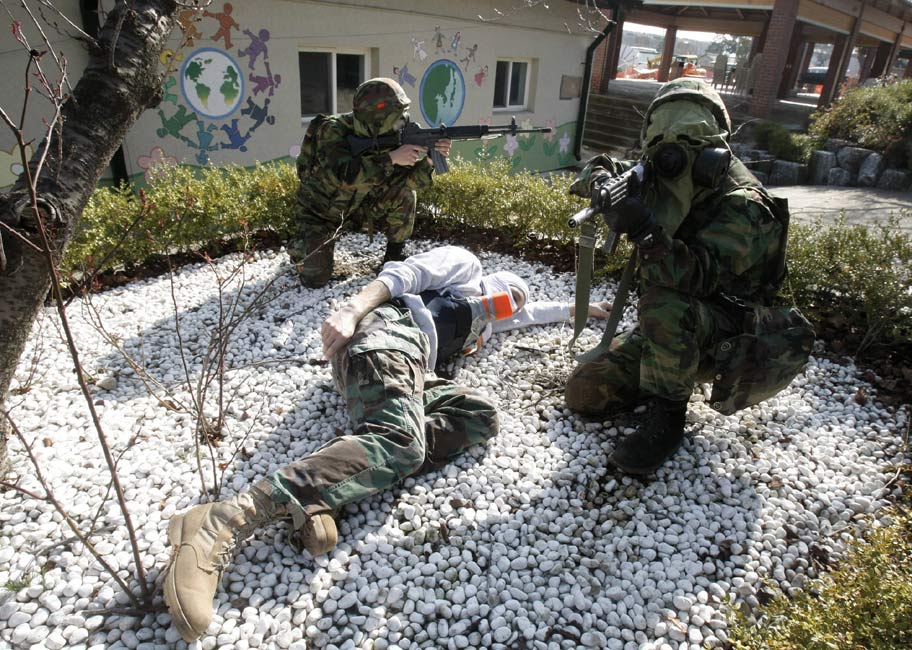 3月11日,在韓國鎮(zhèn)海海軍基地,韓美兩國的海軍陸戰(zhàn)隊舉行了聯(lián)合反恐軍事演習。
