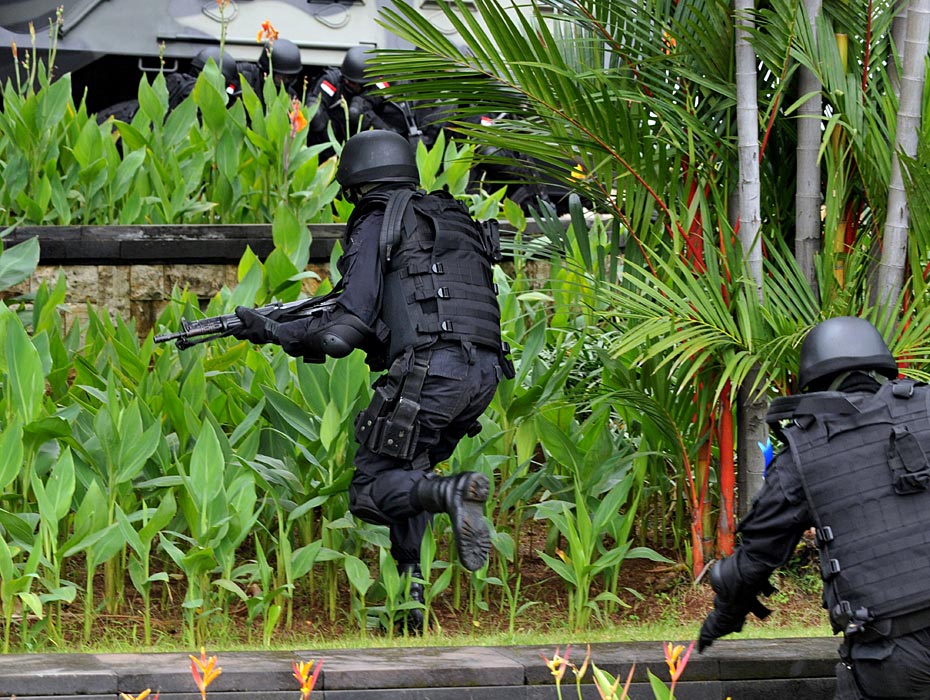 3月13日,印尼警方在首都雅加達的證券交易所舉行了一場反恐演習(xí),為本月底即將到訪印尼的美國總統(tǒng)奧巴馬創(chuàng)造安全的環(huán)境。圖片來源:中國新聞網(wǎng)